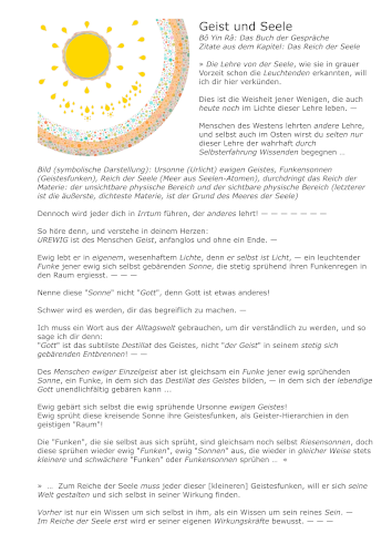 Die folgende bildhafte Übersicht kann dem nach geistiger Wahrheit suchenden Menschen die Skizze einer Landkarte sein, auf der er mit einem Blick seine Situation erkennen kann.